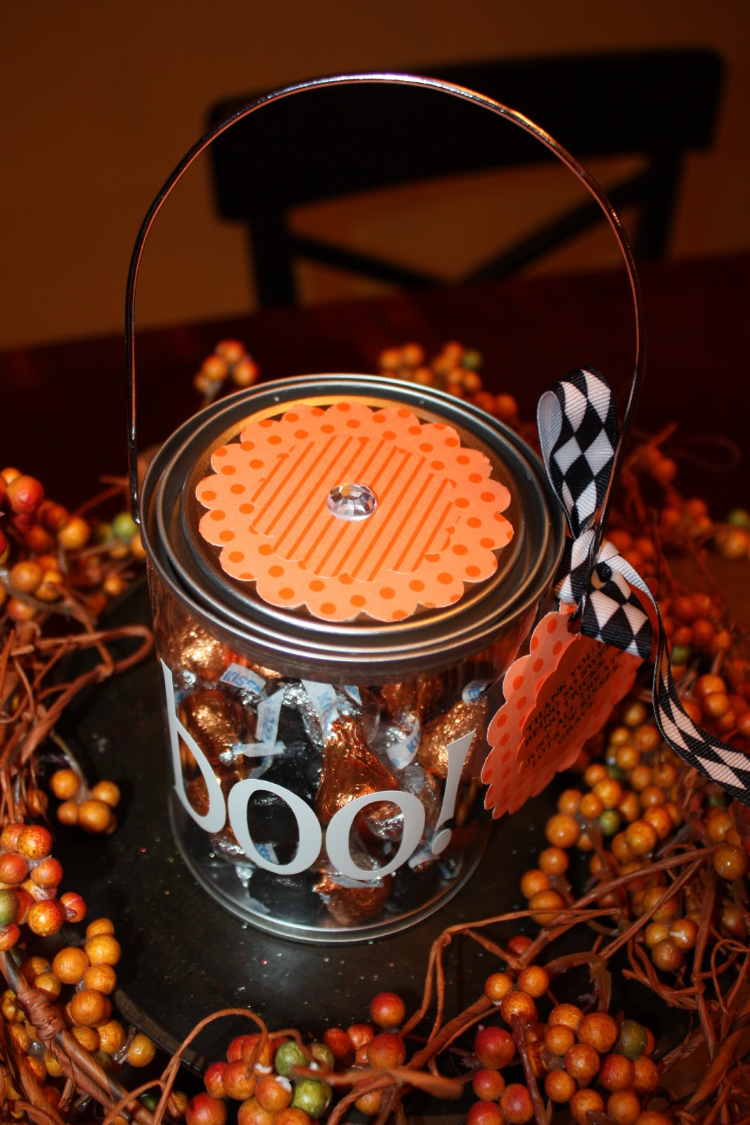 Then, using my Silhouette, I cut out "boo" and added it to the front of the paint can. Here they are unfilled: